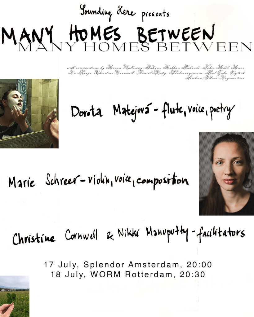18 / JULY: 2 DOMOVY : 2 HOMES performance as part of “Sounding Here: MANY HOMES BETWEEN” event in collaboration with Marie Schreer (violin) and and Nikki Manuputty (facilitator), curated by Christine Cornwell (facilitator, composer) | 20:30 | WORM, Rotterdam | info & TICKETS