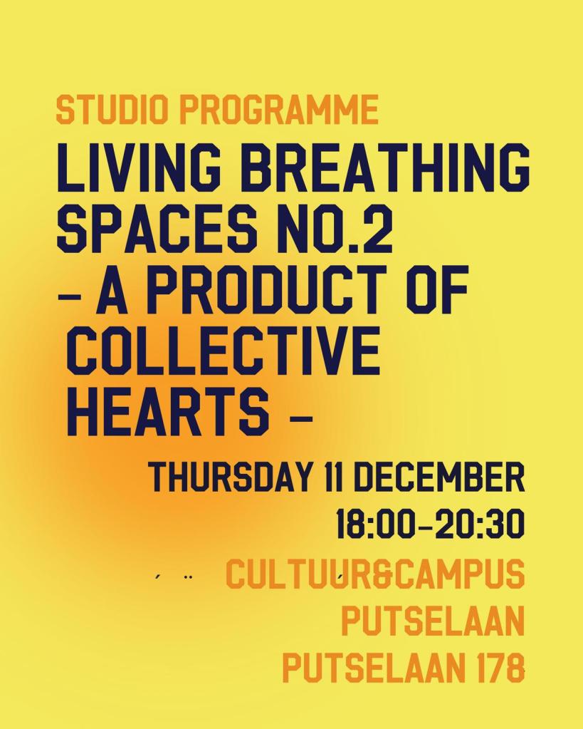 11 DECEMBER: Living Breathing Spaces no. 2 – a product of collective hearts – | community art event at Cultuur & Campus Putselaan made in collaboration with Afrikaanderwijk Cooperation, Rotterdam | doors open: 18:00 | performance 18:30 – 20:30 | free entrance – open to all