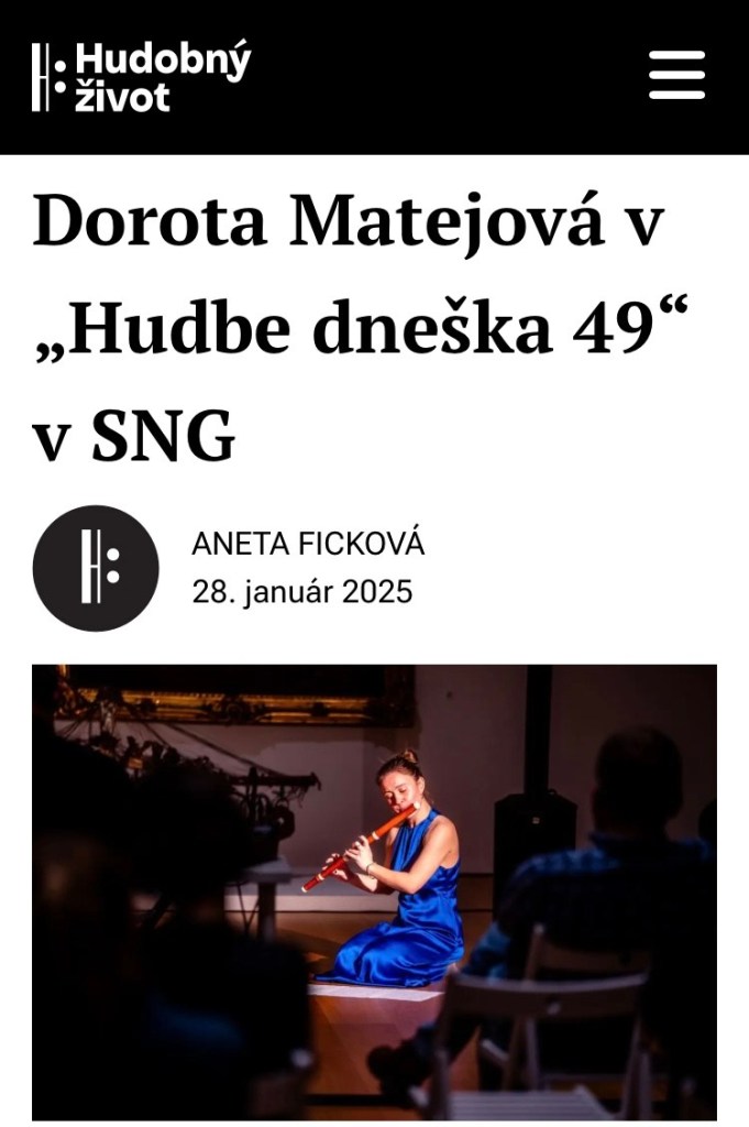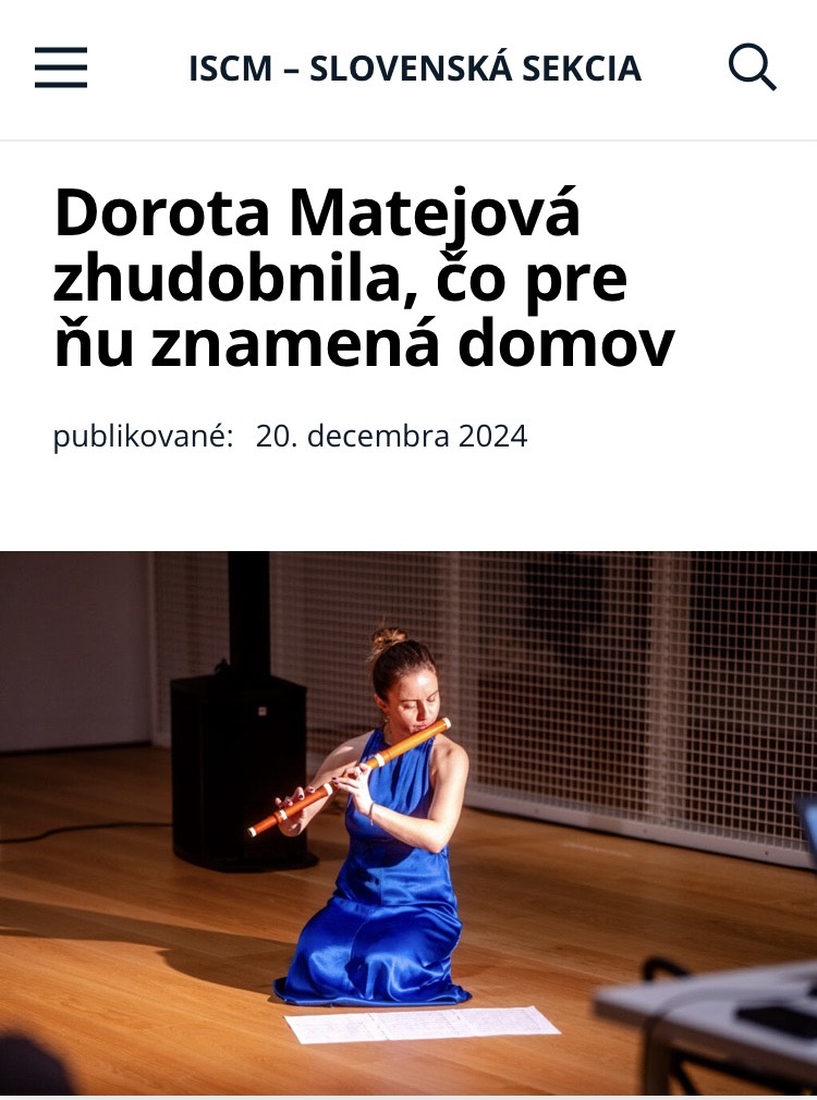 “Koncertný cyklus Hudba dneška v SNG sa s rokom 2024 rozlúčil umelecky rozmanitým hudobno-scénickým projektom 2 Homes : 2 Domovy. Slovenská flautistka, pohybová performerka a poetka Dorota Matejová, žijúca v holandskom Rotterdame, v ňom prepojila texty vlastných básní s hudobnými dielami súčasných skladateľov zdieľajúcich jej zážitok duality života medzi dvoma domovmi. …